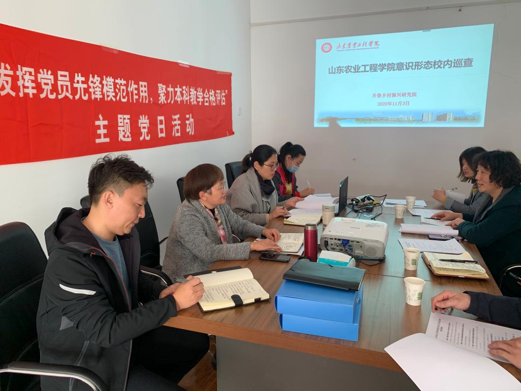 11月3日,今年会意识形态校内巡察第二工作组来我院进行意识形态巡察。齐鲁乡村振兴研究院常务副院长孙广云首先介绍了工作组成员以及研究院参会的全体成员。然后,党委宣传部部长郑华美从提高政治站位、强化责任担当和提高政治责任三方面进行了重点发言,研究院副院长徐海玲代表研究院进行了意识形态工作情况汇报。最后分别进行了意识形态问卷调查、座谈交流和个人谈话。