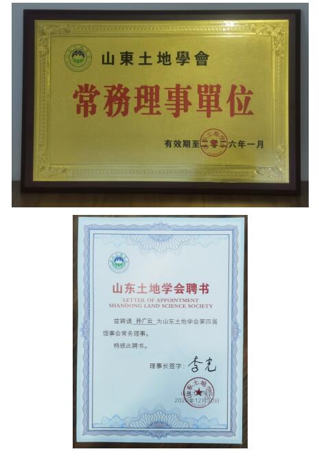 近日,我院被山东土地学会评为“常务理事单位”,研究院常务副院长孙广云教授被聘为“山东土地学会第四届理事会常务理事”。