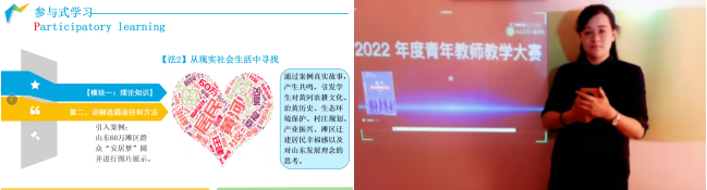 因受疫情影响,校赛通过腾讯会议举行,由原定的教学设计、课堂教学和教学反思三个环节,调整为教学设计和说课两个环节。说课环节中,教师从教学目标与重难点、教法学法、教学过程与效果等几个方面展示教学设计方案。