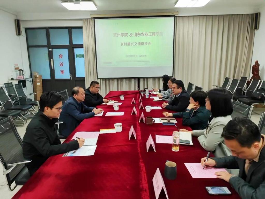 3月31日,滨州学院建筑工程学院党总支书记李永干一行三人到济南校区进行交流座谈,校党委委员副书记张业赏、副校长周吉鹏及乡村振兴研究院全体人员参会。会议主要围绕乡村振兴研究院机构设置、业务开展情况、各自特色优势等方面开展深入交流。