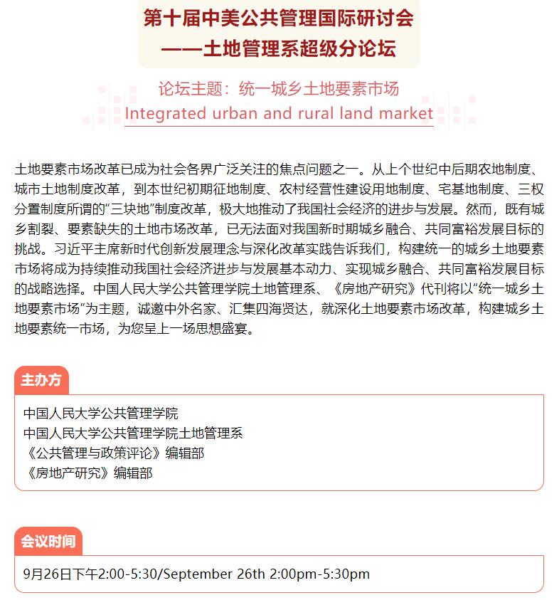 讲座预告:第十届中美公共管理国际研讨会——土地管理系超级分论坛