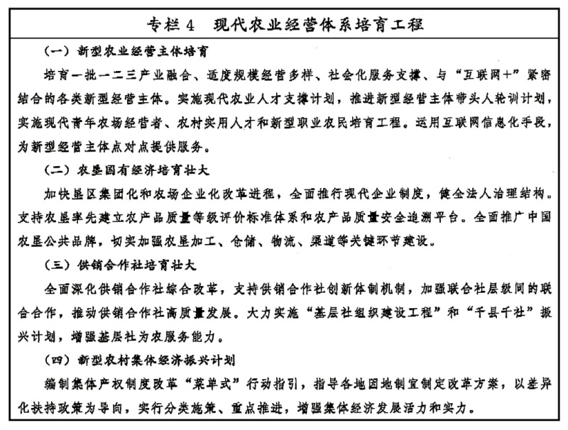 加大“三农”领域实用专业人才培育力度,提高农村专业人才服务保障能力。加强农技推广人才队伍建设,探索公益性和经营性农技推广融合发展机制,允许农技人员通过提供增值服务合理取酬,全面实施农技推广服务特聘计划。加强涉农院校和学科专业建设,大力培育农业科技、科普人才,深入实施农业科研杰出人才计划和杰出青年农业科学家项目,深化农业系列职称制度改革。