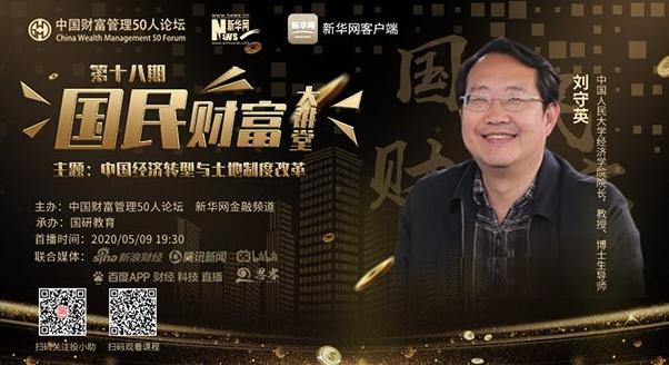 新华网北京5月10日电(石海平) 要素市场化配置改革是当前热点话题。作为五大要素之一的土地,将对正在转型的中国经济产生哪些影响?5月9日晚上七点半,新华网与中国财富管理50人论坛联合推出的投资者教育公益云课堂《国民财富大讲堂》第十八期播出。中国人民大学经济学院院长,教授、博士生导师刘守英做客国民财富大讲堂,与网友分享了对中国经济转型与土地制度改革的看法。