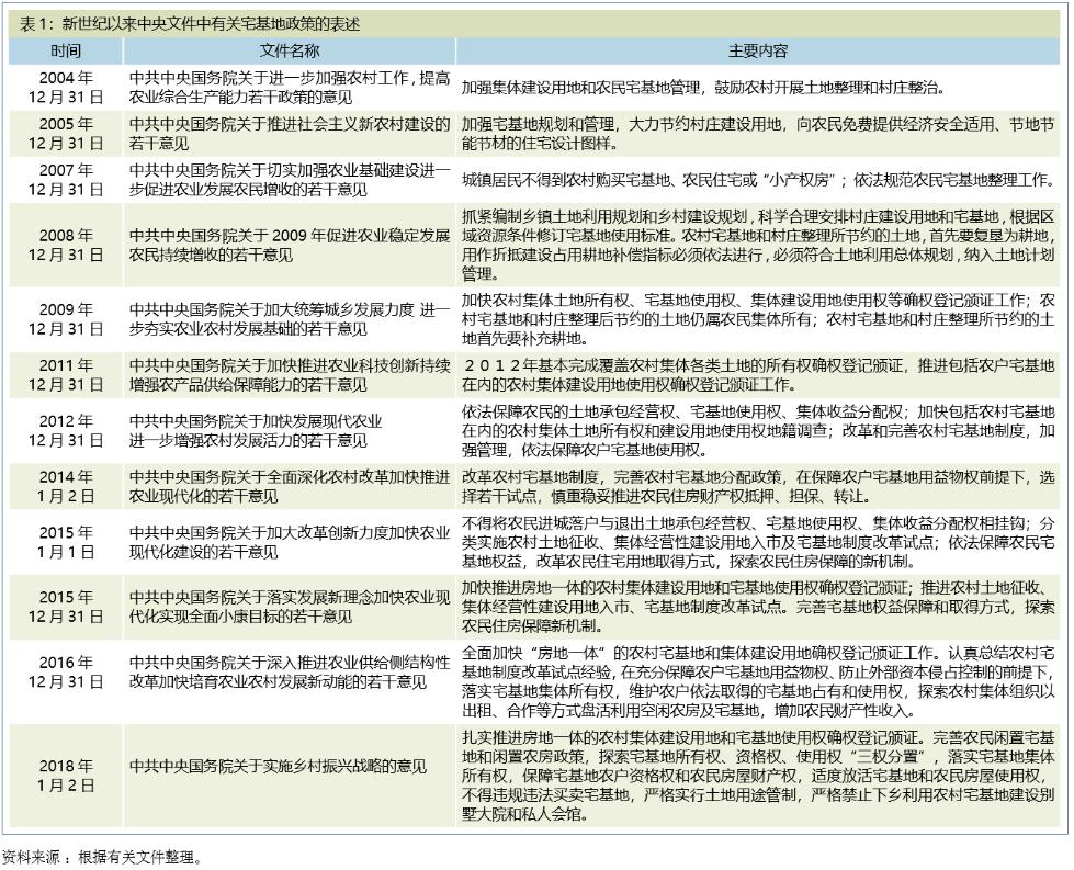 新世纪以来,随着大量农村劳动力向城镇转移甚至定居,农村闲置的房屋逐渐增多,而一些地方留在农村的新增成人却很难分配到宅基地,这个矛盾使改革农村宅基地的呼声越来越大。因此,新世纪以来的15个中央一号文件中,对农村宅基地管理和改革有明确提法的就有 12个,见表“新世纪以来中央文件中有关宅基地政策的表述”。