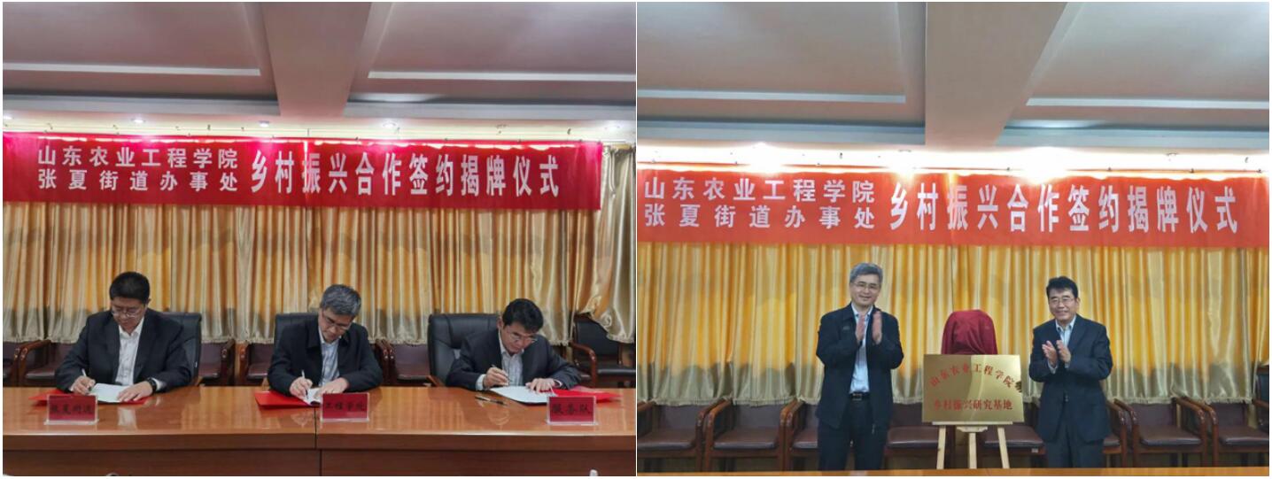 10月21日,张兆明副校长代表今年会与张夏街道和济南市乡村振兴服务队长清区2队共同签订乡村振兴战略合作协议,并为乡村振兴研究基地揭牌。今年会齐鲁乡村振兴研究院、干部进修学院以及张夏街道负责人和乡村振兴服务队相关人员参加了签约揭牌仪式,仪式由张夏街道纪工委书记冯绪君主持,张兆明副校长、张夏街道党工委张涛书记分别致辞。