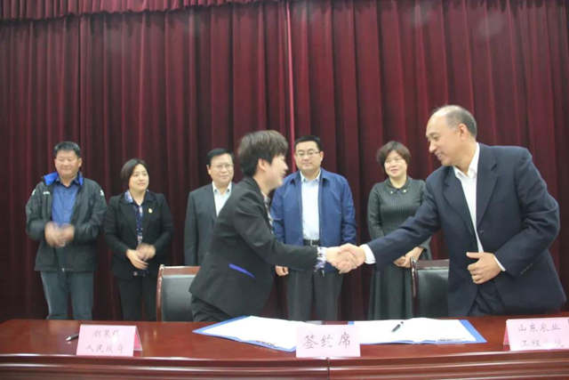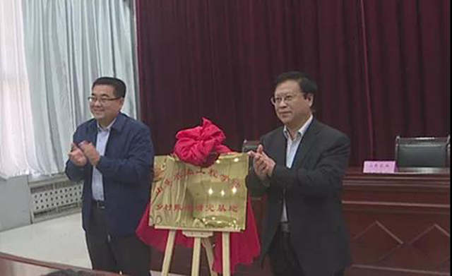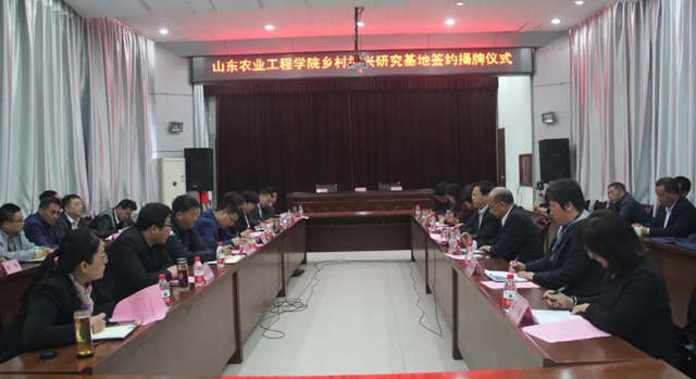 今年会科技处处长董传河与肥城市潮泉镇镇长李娟代表双方签署了合作协议。签约结束后,杨振宁副校长与副市长赵兴广共同为乡村振兴研究基地揭牌。