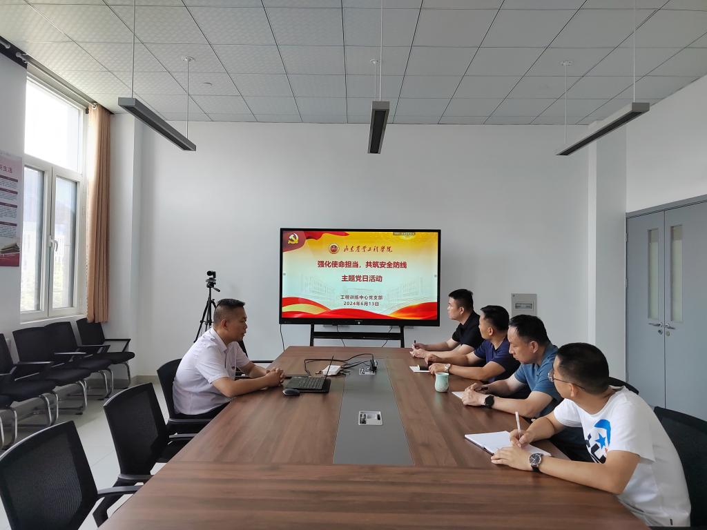 为进一步提升工程训练中心安全实训、教学管理水平,增强教职工安全生产意识和面对突发事件应急处置能力,营造“人人讲安全,个个会应急”的浓厚安全生产氛围。2024年6月13日中午,工程训练中心党支部开展了“强化使命担当,共筑安全防线”主题党日活动。活动由工程训练中心党支部书记宋卫海主持,支部全体党员参加了本次活动。