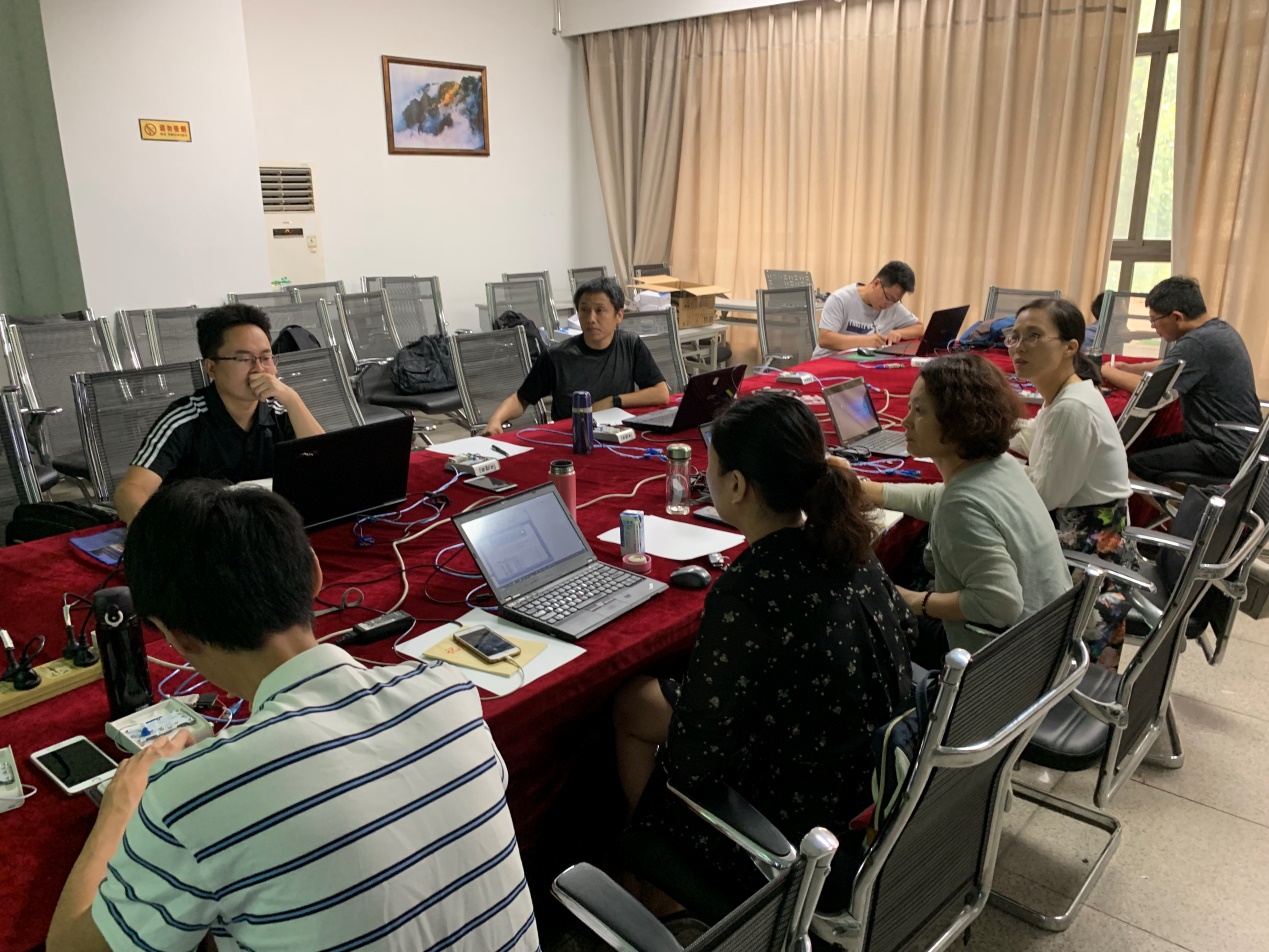 随后,大家在两位工程师的指导下,从设备接入开始,然后搭建开发环境,最后进行代码调试、运行,整个过程完整、结果正确,达到了较好的实践效果。