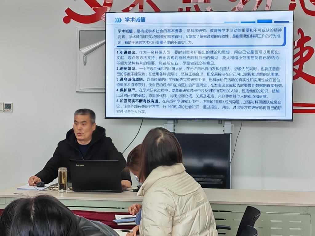 为响应学校科研诚信专项整治活动,杨现德院长于2023年3月16日面向全员教职工做了“学术诚信及个人科研交流”专题讲座。杨院长从学术诚信的重要性及个人科研的心得交流等几个方面谈了对学术诚信的理解及个人在科研方面的一些心得体会。