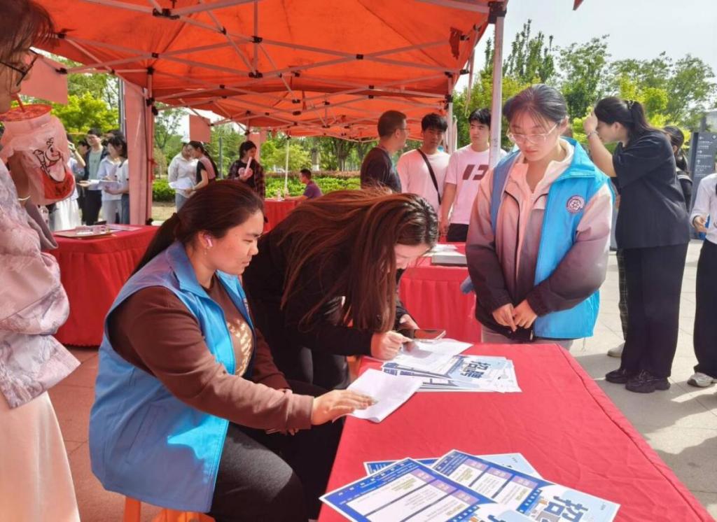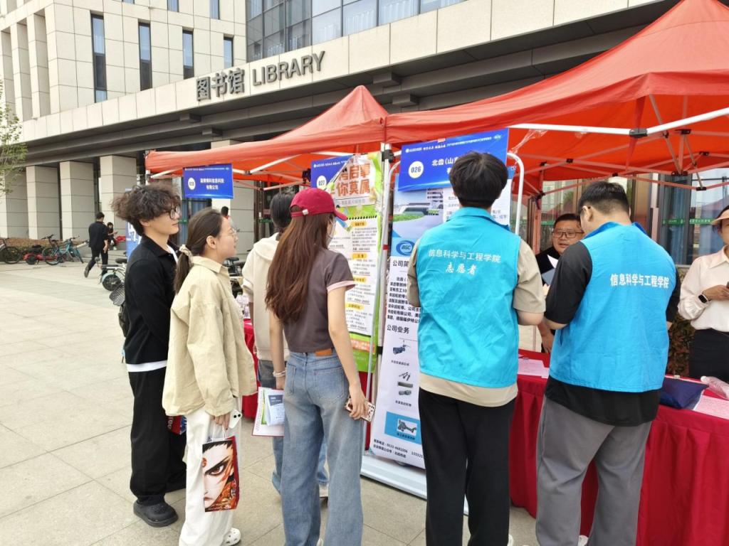 2025年4月17日下午13:30,今年会官方网站2025届毕业生就业暨2026届毕业生实习春季双选会在图书馆前广场顺利举行。为确保本次招聘会顺利举行,信息科学与工程学院组织了青年志愿者参与志愿服务活动,志愿者们以饱满热情为参会企业布置展位,为毕业生提供就业咨询引导,全力维护现场秩序,确保招聘会圆满收官。