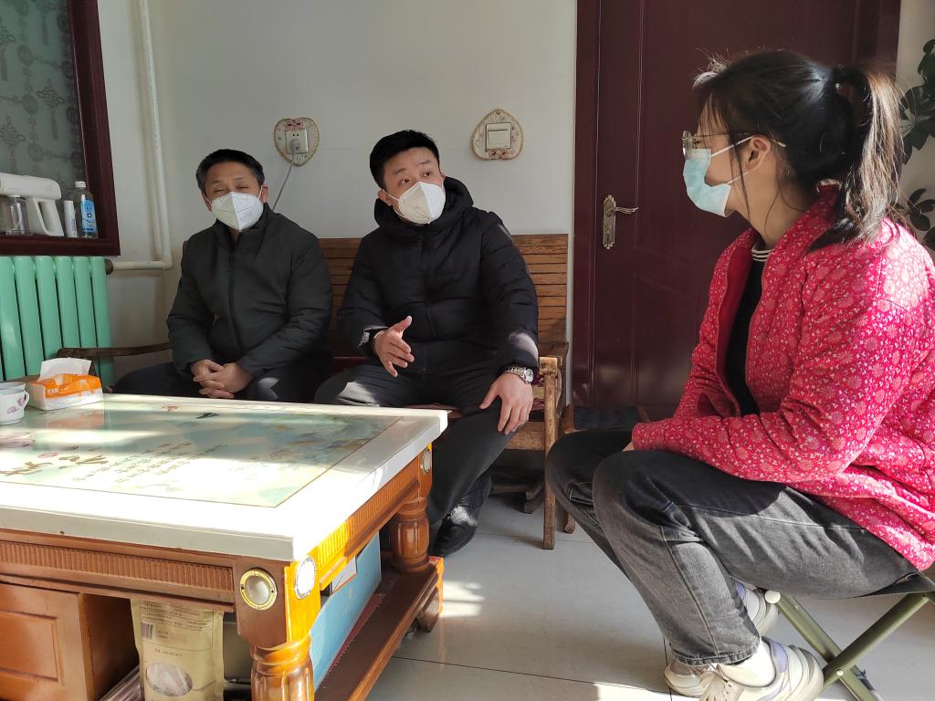 1月10日上午,信工学院党总支副书记孙向群,创新创业与就业工作指导教师夏天宇、资助工作负责教师孙兆柱一行三人前往潍坊,走访慰问郭向洁、董勇杰两位学生,在走访慰问过程中,各位老师耐心询问学生的返乡情况和日常生活,与学生家长进行沟通,详细了解学生家庭的生活状况,重点就未来的就业问题展开了讨论,主动解答了家长的疑惑,确保学生及家长了解相关政策,帮助学子成功高质量就业。