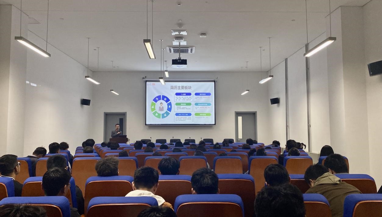 在报告会上,赵成老师首先向同学们展示了一组考研报考人数和录取人数的数据,并说明考研是现在大三学生的主流,对于不打算考研的学生理应优先考虑就业问题。随后,赵成老师分两点为同学们提供建议。第一点是选择好的行业,互联网是核心研发岗位,无论社会发展的多迅速,始终离不开互联网,互联网包含多种技术,可以选择其中一种技术进入行业。第二点是找准定位,找到当前阶段个人优势及劣势,不足的方面需要尽快提升,不要在社会上直接找工作,要在找工作之前先把自己提升到符合公司的要求。接着,赵成老师对同学们进行简历指导,用不同求职者的简历来说明写好简历的重要性,点明简历的重要性以及如何写好简历和怎样避免投简历的弊端,最后用一个简历主要板块总结需要注意的地方。