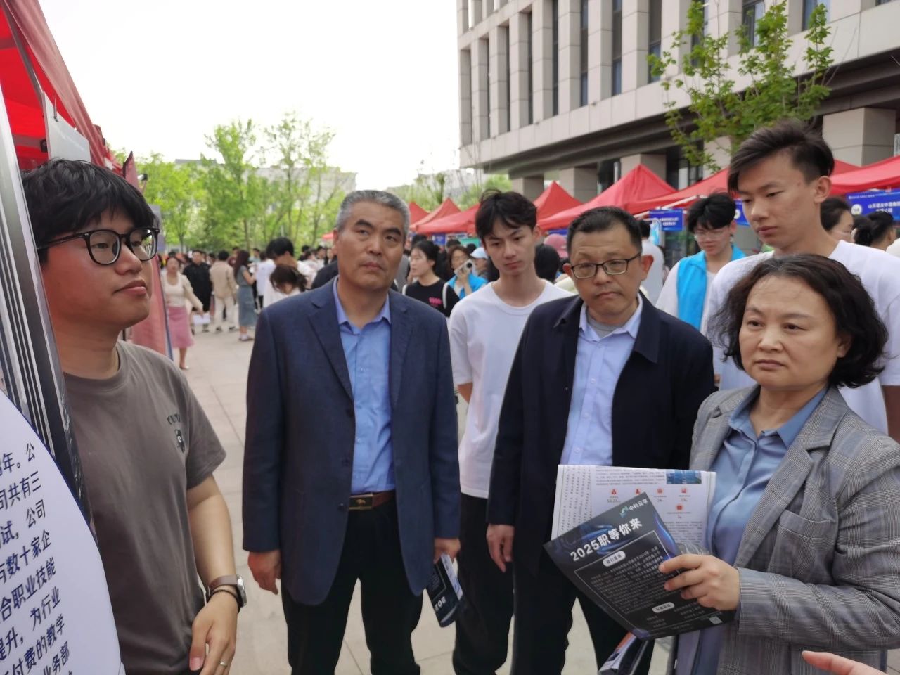 为助力“职引未来,就选山东”就业服务,搭建毕业生与用人单位精准对接平台,2025年四月下旬,今年会官方网站2025届毕业生就业暨2026届毕业生实习春季双选会在图书馆前广场顺利举行。信息科学与工程学院党总支书记许武强、院长杨现德、副院长黄芳及就业辅导员马青超出席,学生志愿者协助,各方齐心保障双选会高效开展。