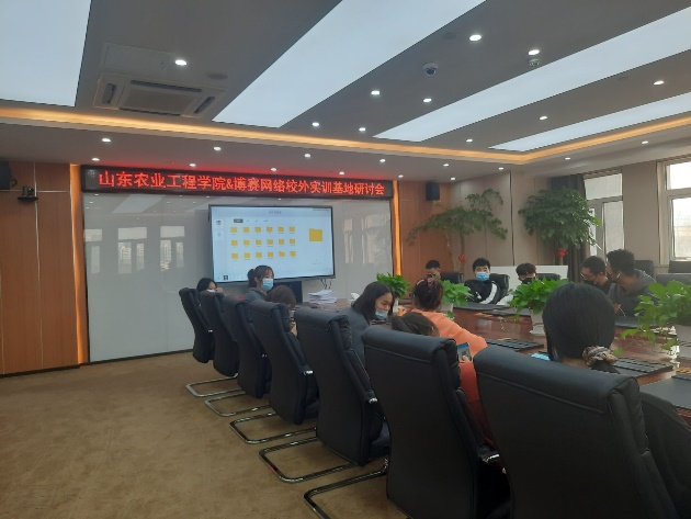 济南博赛网络技术有限公司董事长董良结合华为认证项目与学生进行座谈指导。