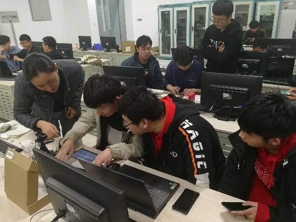 本次培训,青橙视联公司为每组学生提供了人工智能开发板套件,用于案例的实操。工程师们首先介绍了人工智能开发板的基本使用方法以及应用场景,并带领同学们搭建了软、硬件使用环境;其次,简单介绍了Python编程语言、Linux系统的基本配置及常用命令,从基于Linux平台下的Python编程控制LED的案例入手,熟悉了相关硬件及AI开发工具的使用;最后,重点讲解了“智能广告推荐系统”和“人脸识别开锁”两个人工智能典型应用案例,手把手的带领同学们在AI开发套件上进行了编程实现,引起来同学们的极大兴趣。
