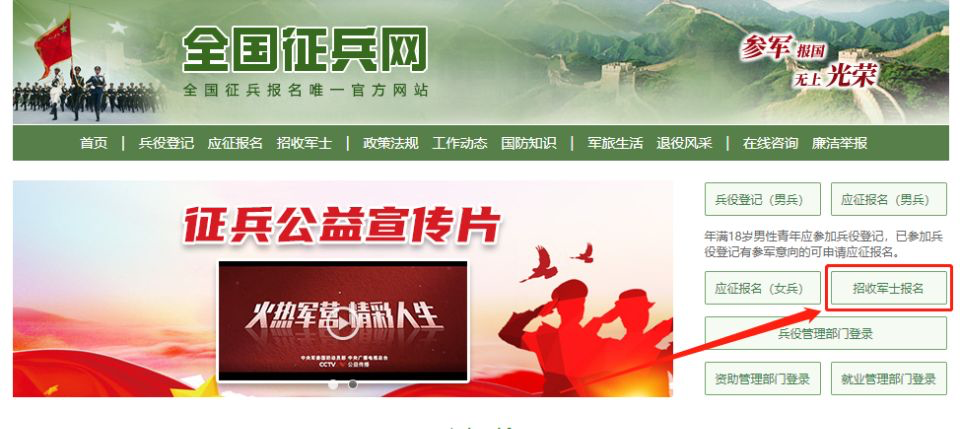 招收军士的网上预报名通道