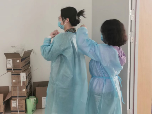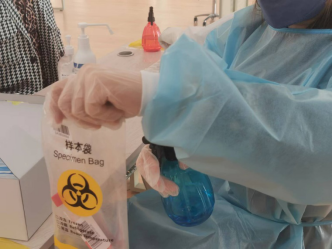 本次志愿服务于校内体育馆进行,对信工学院、食品学院、资环学院、机电学院抽检人员的咽拭子核酸检测提供服务保障。早上七点四十,我院老师如期而至。首先是准备工作,老师们纷纷穿上蓝色防护服,佩戴防护帽、医用口罩,系好拉链、扣子、密封条,相互检查。随后,部分老师于桌子一侧粘贴医疗废物袋、放置样本收集桶。