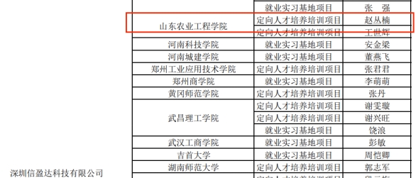 近日,教育部高校学生司发布《教育部高校学生司关于公布第二期供需对接就业育人项目立项名单的通知》(教学司函[2023]6号),我院与深信服科技股份有限公司、济南博赛网络技术有限公司和北京华清远见科技发展有限公司联合申报的就业实习基地项目,与深圳信盈达科技有限公司公司联合申报的定向人才培养培训项目,共4个项目获批立项。
