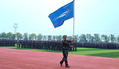 国旗迎风飘扬,细雨中响起《义勇军进行曲》,师生集体敬礼并颂唱国歌。随后军训分列式在总教官的口令声中有序开始,各连队迈着整齐而有力的正步依次通过主席台,整齐的步伐声和嘹亮的口号充分展现了山工院学子饱满的精神状态,赢得了主席台上各位老师们的阵阵掌声。