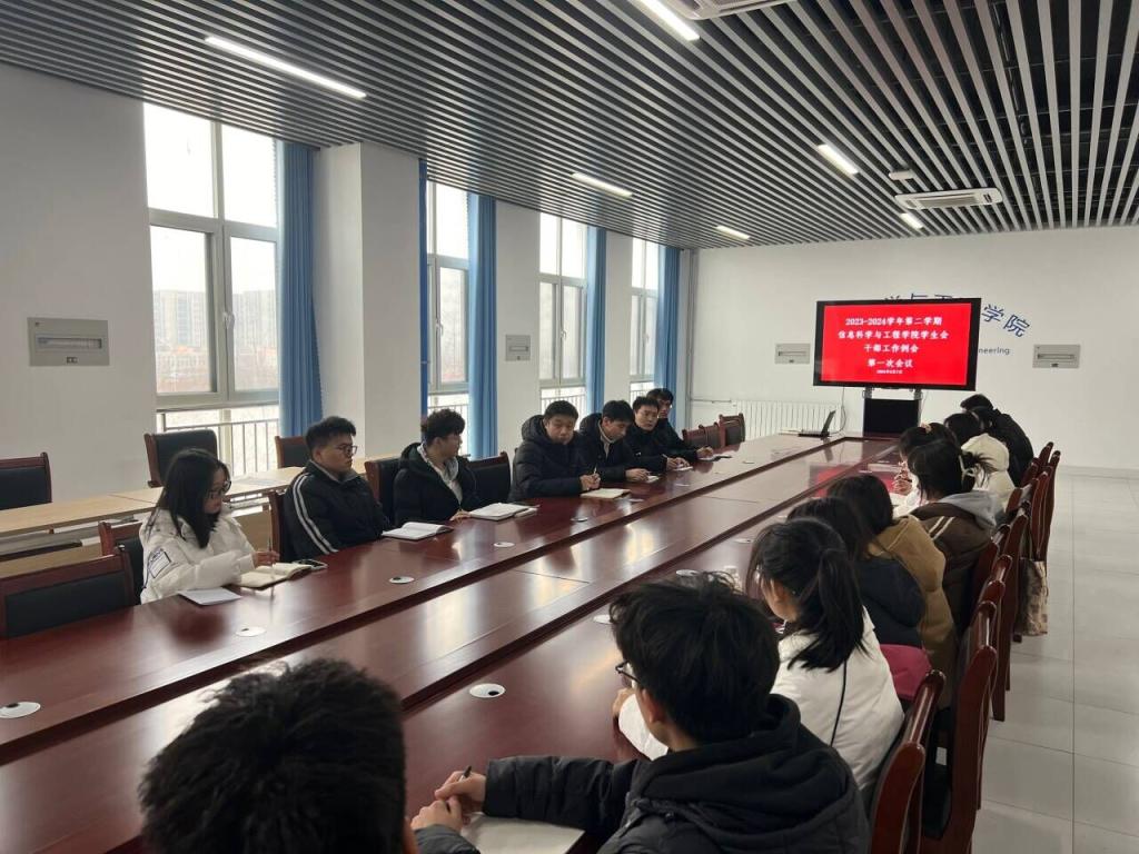 为了总结学生会各部门上学期的工作,并规划本学期的工作方向,2024年3月7日下午13时,信息科学与工程学院在理工东楼A310召开了本学期第一次学生会干部例会。此次例会由团总支书记夏天宇主持,信息科学与工程学院学生会各部长参加。会议主要内容分为三个部分:团总支介绍、各部门工作总结与规划以及建议与反馈。