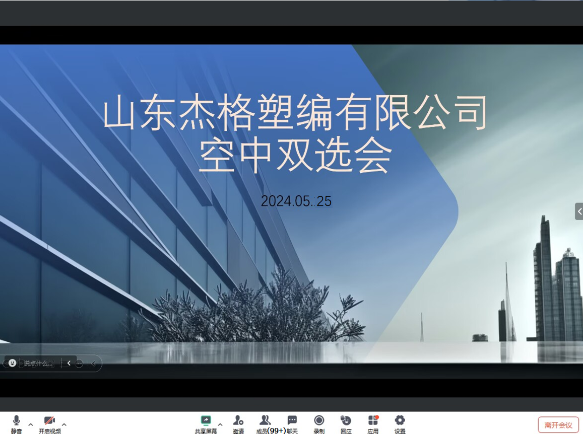 本次空中双选会采用线上会议方式,打破了地域限制,吸引了众多学子的积极参与。山东杰格作为塑料编织行业的佼佼者,凭借其卓越的企业实力、丰富的产品线以及广阔的市场前景,成为了众多学生关注的焦点。