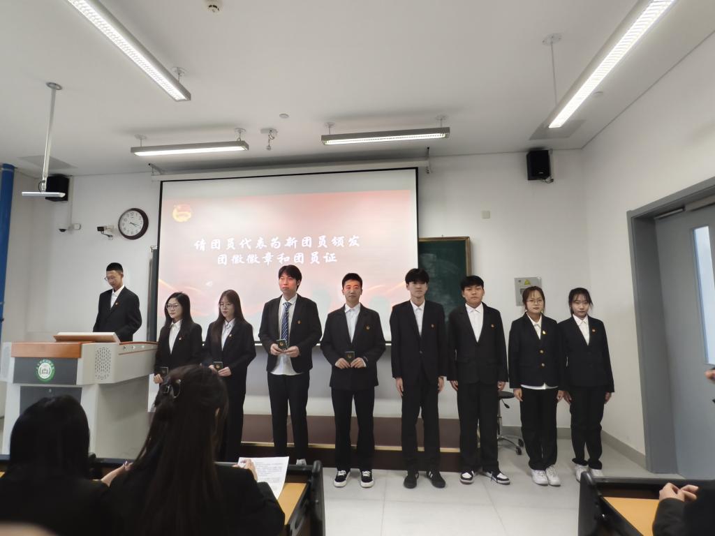 随后,由新团员代表胡晨曦和优秀团员王雅琦发言,表示在今后的学习和生活中努力奋斗,不负团组织的信任和期望。号召在共青团旗帜下承担责任,不断成长,为实现中华民族伟大复兴的中国梦贡献自己的力量。