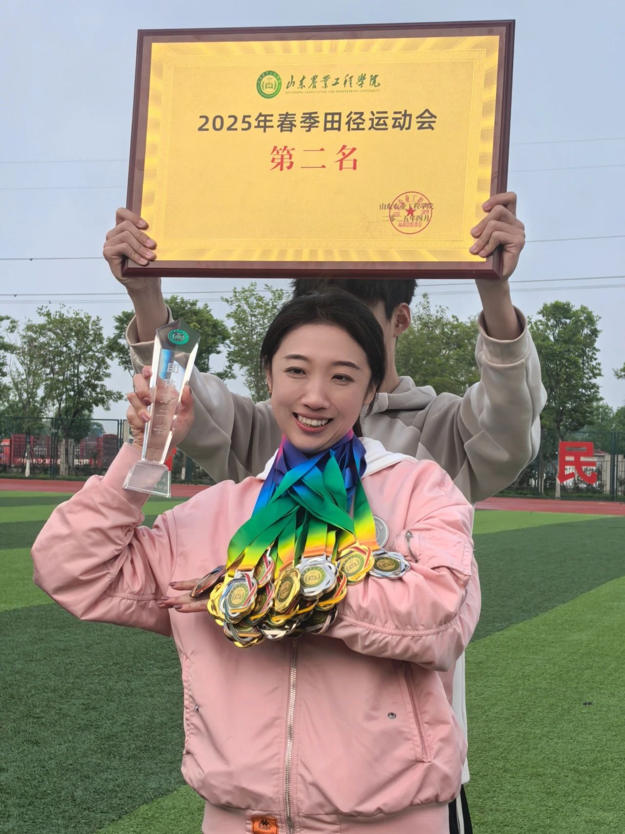 女子赛场上,信工学院的女运动员们宛如铿锵玫瑰,绽放绚丽光彩。24级计算机网络1班解潇在女子100米比赛中,以 13.91 的成绩强势打破校纪录,一举拿下金牌,在女子 200 米比赛中也收获银牌;李瑞在女子400米和200米中,分别摘得金牌和铜牌,崔新爱在400米比赛中也荣获银牌;女子1500米和800米的长跑中,纪兰兰勇夺金牌和铜牌,铿锵玫瑰,别样风采,都强势夺下双牌;团体女子4×400米比赛,崔新爱、李瑞、王梦汶、谢潇四人荣获金牌,同时,四人在团体女子4×100米比赛也取得第二名优异成绩。信工学院的女运动员们在雨中绽放,用汗水诠释着坚韧与不屈。她们用坚韧不拔的毅力,展现了信工学院女生的别样风采。