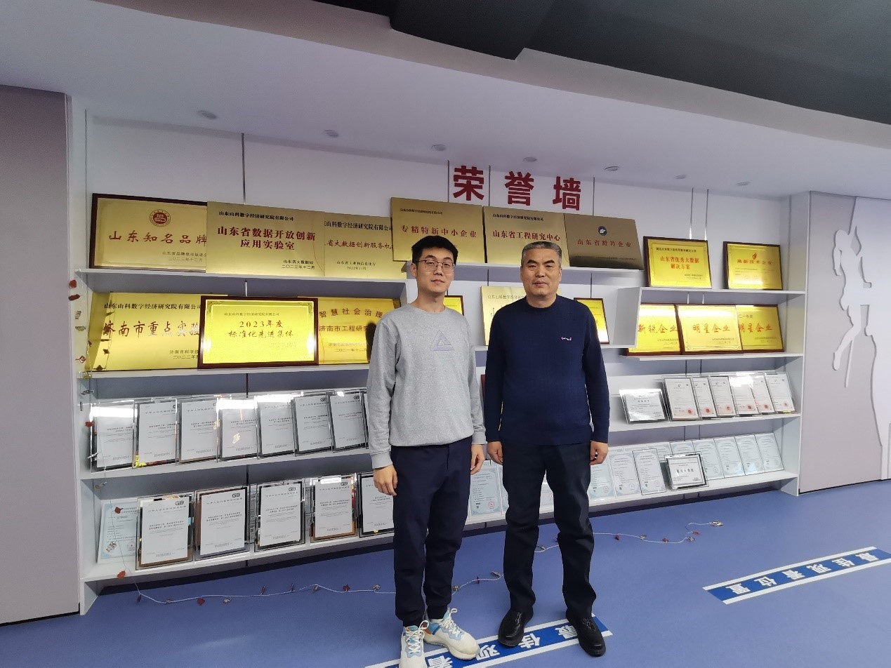 在山东山科数字经济研究院,杨现德院长向研究院的领导和员工介绍了学院的发展状况、专业设置、师资力量以及科研成果等情况。他表示,学院一直致力于培养高素质的信息技术人才,希望与研究院在人才培养、科研合作、项目开发等方面开展深入的合作,共同推动信息技术应用领域的创新与发展。山东山科数字经济研究院对杨现德院长的访问表示热烈的欢迎,并详细介绍了研究院的业务范围、技术实力以及未来的发展方向。研究院负责人表示,他们非常愿意与学院开展合作,共同探索信息技术应用的新模式和新方法,为行业发展贡献智慧和力量。