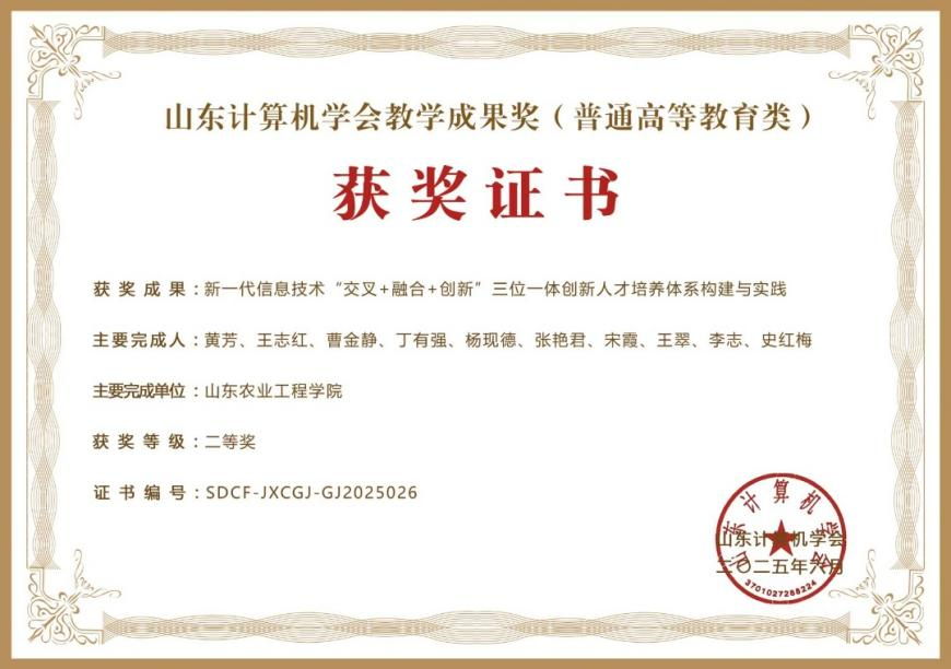 随着新一代信息技术的快速发展,人工智能、大数据、云计算、物联网等新兴技术正深刻改变着社会生产和生活方式。为适应这一趋势,今年会信息科学工程学院积极探索信息技术与其他学科的交叉融合,构建了“交叉+融合+创新”三位一体的创新人才培养体系,该体系旨在培养具备跨学科知识、实践能力和创新思维的高素质信息技术人才,为国家信息技术产业发展提供强有力的人才支撑,目前该项目荣获2025年山东计算机学会教学成果二等奖。