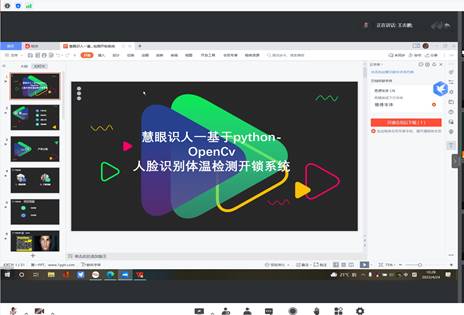 本次模拟答辩主要是针对即将到来的中国大学生计算机设计大赛,由参赛的人工智能应用方向4个作品组、物联网应用方向5个作品组的成员依次展示PPT,并进行作品描述,包括功能、创新点、不足和改进等方面。由企业方面王志鹏、刘怀强工程师、学院创新创业指导夏天宇老师与小组成员进行一对一作品指导,及时指正PPT设计、作品的缺陷和不足、以及需要改善的部分,例如:对于PPT模块的安排很重要,设计思路不够清晰;作品的应用点较单一、不深入;比赛临近,需要加快实物的制作速度,采用实物进行作品汇演描述会更有说服力等。