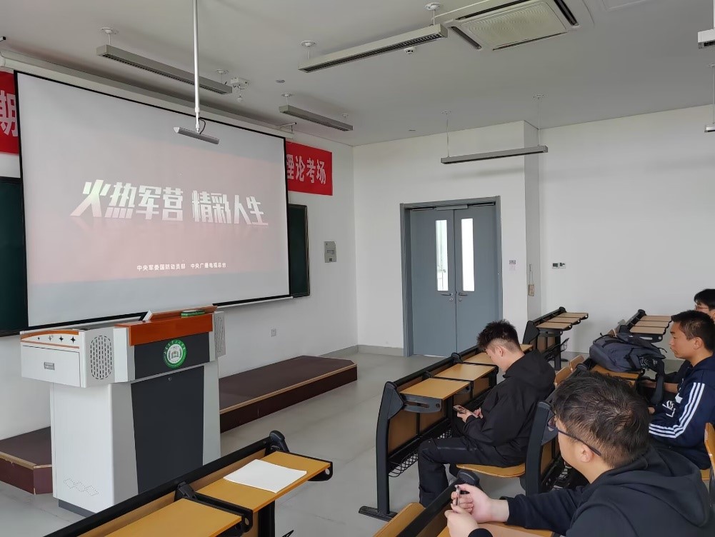 投笔从戎去参军,绽放青春报祖国。通过一段2023征兵宣传视频,夏天宇老师带领同学们了解了征兵宣传政策,激发了同学们应征入伍、保家卫国的热情。随后,夏老师强调了参军入伍的必要性和重要性,他提到:“国无防不立,民无兵不安”,根据我国宪法第五十五条规定:保卫祖国、抵抗侵略是中华人民共和国每一个公民的神圣职责,依照法律服兵役和参加民兵组织是中华人民共和国公民的光荣义务。接下来,夏老师详细介绍了参军入伍对升学考学、就业上岗、考公考编、自由创业等多项优惠政策,并详细介绍了参军入伍的报名方法和注意事项,鼓励学生踊跃参军入伍,报效国家。