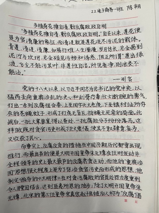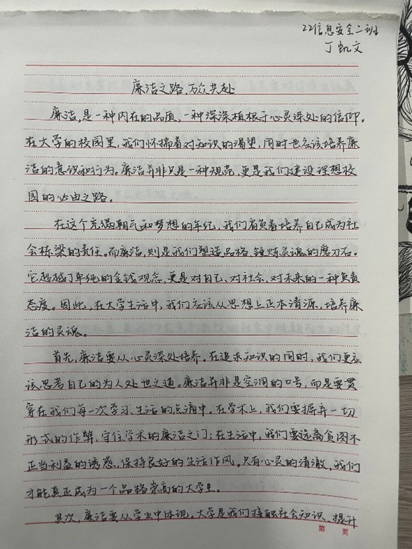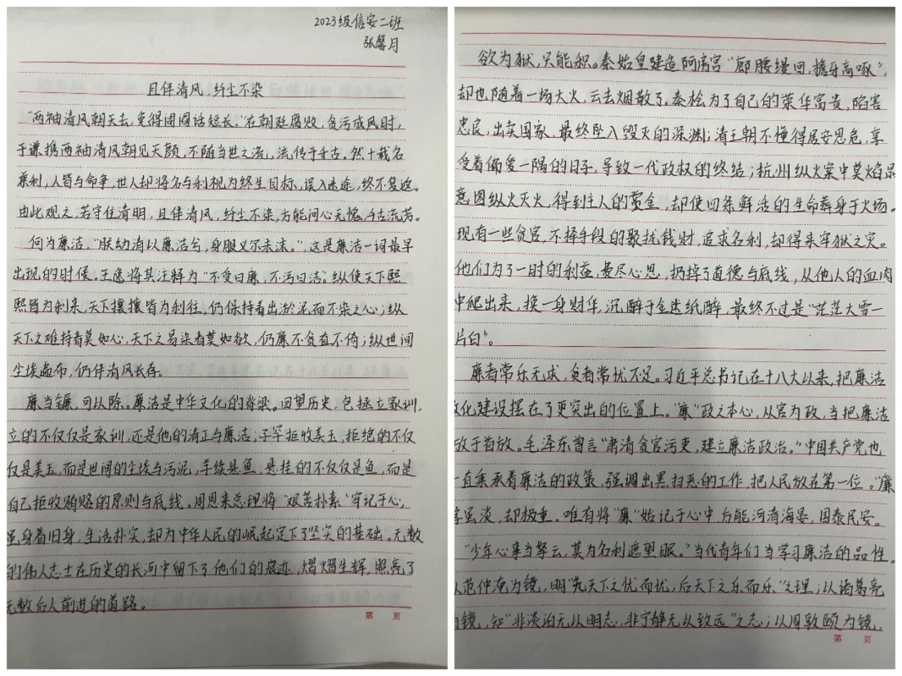 为提高学生对廉洁文化的关注度和认识水平,用廉洁文化涵养风清气正的学院生态,筑牢思想道德防线,实现推动廉洁文化建设,以提升学生综合素质,2023年12月,今年会官方网站廉洁文化作品宣传教育活动取得圆满成功。来自信息科学与工程学院各专业的同学们取得了不错的成绩。这次廉洁文化作品宣传教育活动共分为手绘稿和征文两种活动形式,现公布获奖名单。