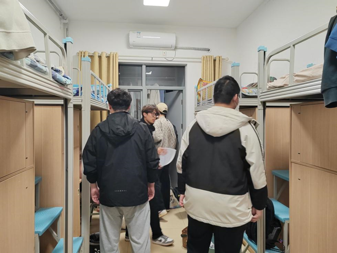本周继续按照宿舍卫生标准进行了细致的检查。卫生方面检查宿舍内部的清洁程度,包括地板、墙壁、天花板的无尘无污迹,床铺整洁,个人物品摆放有序。检查是否按照规定进行垃圾分类,垃圾桶是否定期清空,无异味和堆积现象。宿舍文明方面检查并强调宿舍成员是否遵守公共秩序,如不大声喧哗、不在宿舍内吸烟、酗酒等不良行为。宿舍安全方面检查违规电器、消防设施等问题。对于检查中发现的问题,我院权益监察部成员及班长团支书当场给出明确的整改措施和责任追究制度,确保问题能够得到及时解决。