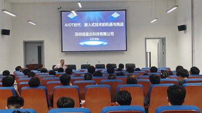 袁魁先生在本次讲座以“AIOT时代,嵌入式技术的机遇与挑战”为主题,首先介绍了AIOT时代,嵌入式技术的机遇与挑战的基本概念和原理,并详细阐述了AIOT技术的发展背景和前景。袁魁先生的讲解于实际生活结合在一起,让在场学生们对嵌入式技术有了更为深刻的认识。