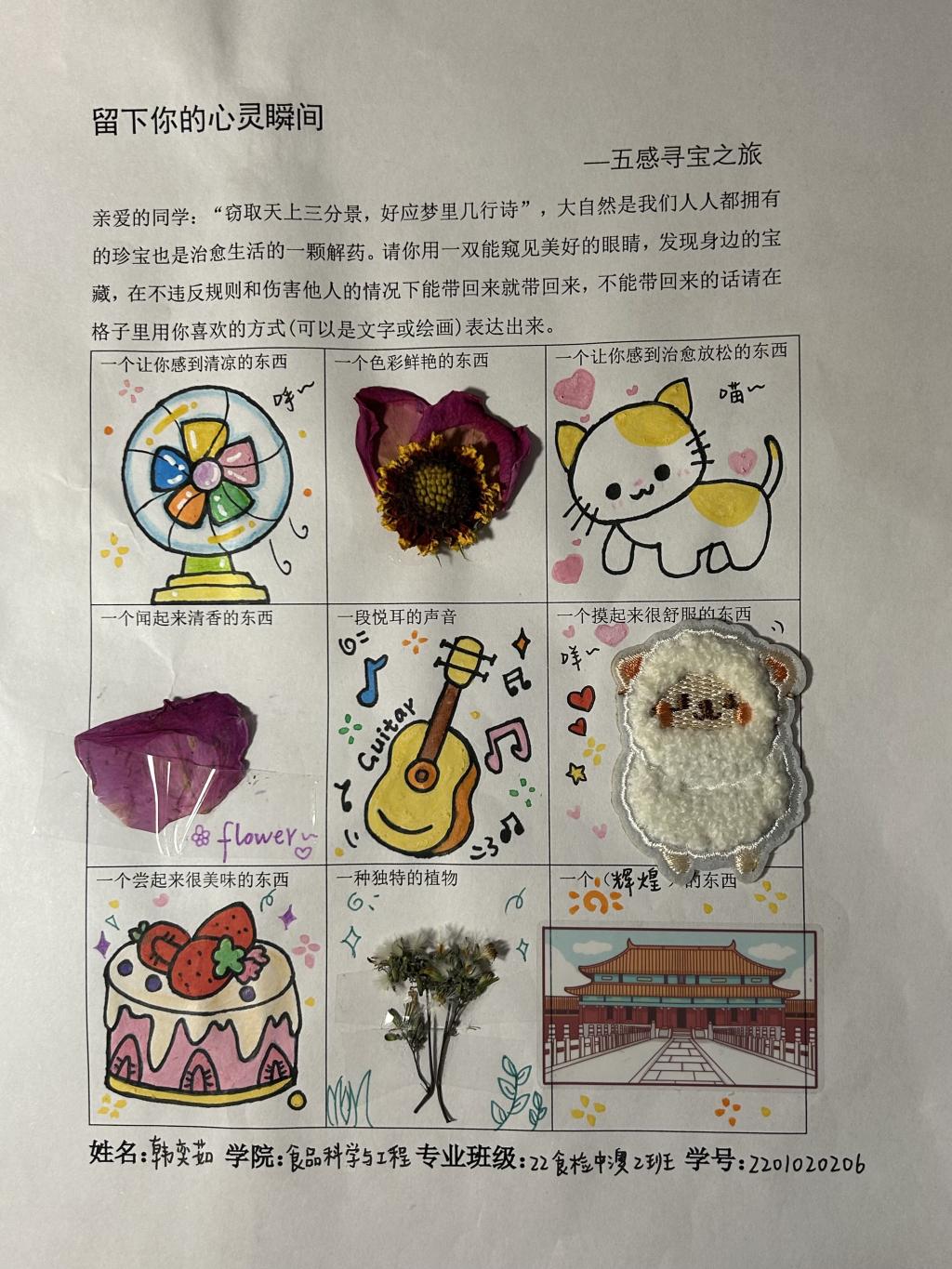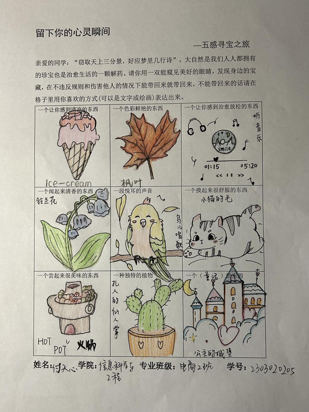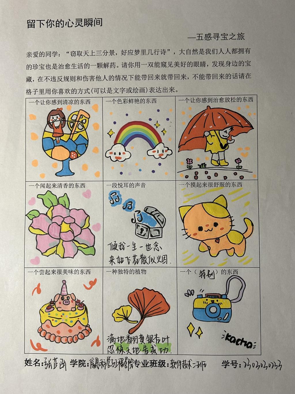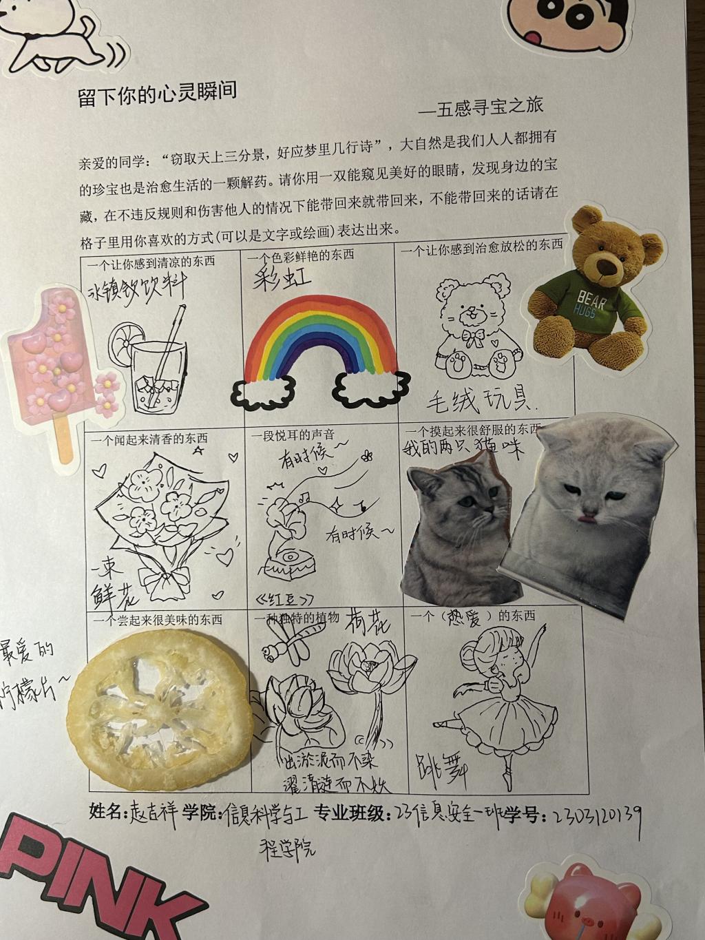 除了寻宝环节外,活动现场还设置了感官体验区和创意工坊。在感官体验区,他们通过触摸、嗅闻等方式,进一步感受了大自然的魅力。在创意工坊中,同学们利用收集到的宝物制作了精美的手工艺品,展现了他们的创意和动手能力。