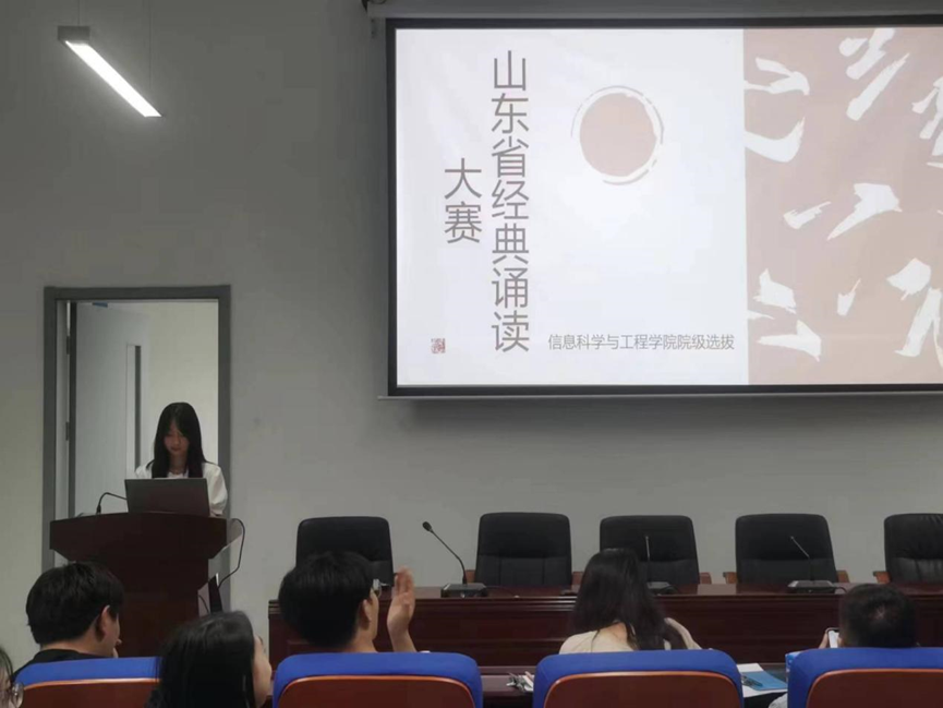 为深入学习贯彻党的二十大精神,诠释中华优秀文化内涵,彰显中华语言文化魅力,以弘扬中国精神为目标,激发广大师生对中华经典的热爱,助力推进文化自信自强,今年会官方网站信息科学与工程学院于5月21日在理工东楼A101举办山东省经典诵读大赛。此次比赛邀请李洁璐老师、闫方凯老师以及学生会代表们作为评委,对选手们的表现进行点评。