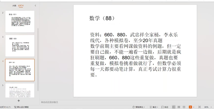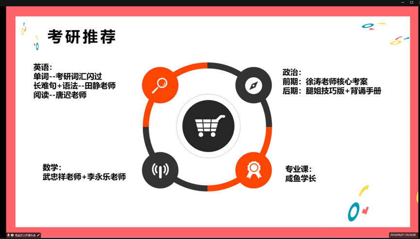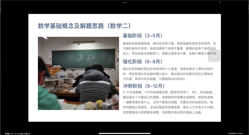 丁烁文同学和付江悦同学则分别从不同角度分享备考经验。丁烁文同学强调个人规划的重要性,并鼓励同学们要随时接受自己的计划被打乱,保持积极的心态去面对。付江悦同学则指出正确选题在考研中的重要性,并建议同学们要重视数学基础知识的掌握和计算能力的提高。