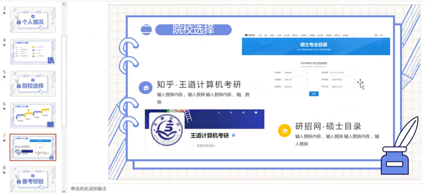 张树展,于至娟,周俞辰等7名同学也依次讲诉自己的考研经历,通过丰富的备考经验和独特的学习方法,为信工考研学子提供很多实用的备考技巧和方法,帮助考研学子收获信心和动力,更加坚定自己考研的目标和决心,以便更好地规划自己的考研之路。