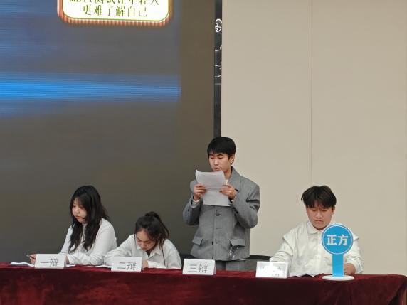 古有云:“辩古今之是非,论天地之对错”。为锻炼逻辑与批判性思维,提升语言表达的准确性和感染力,促进知识的拓展和交流,培养团队协作精神,信息科学与工程学院特举办“论捭阖之道,明思辨之理”“新生杯”辩论赛。2024年11月7日晚19:00,决赛在文法西楼A104教室顺利进行,辩论社指导老师赵丛楠出席本次比赛。
