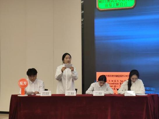 反方辩手也毫不示弱,他们的观点是“MBTI测试让年轻人更容易了解自己”,反方一辩在立论时旁征博引,用丰富的事例和数据增强了论点的说服力。在攻辩环节,反方二辩和三辩反应迅速,针对反方的陈述,提出一连串尖锐的问题,如连珠炮般向对手发起攻击,现场气氛瞬间被点燃。