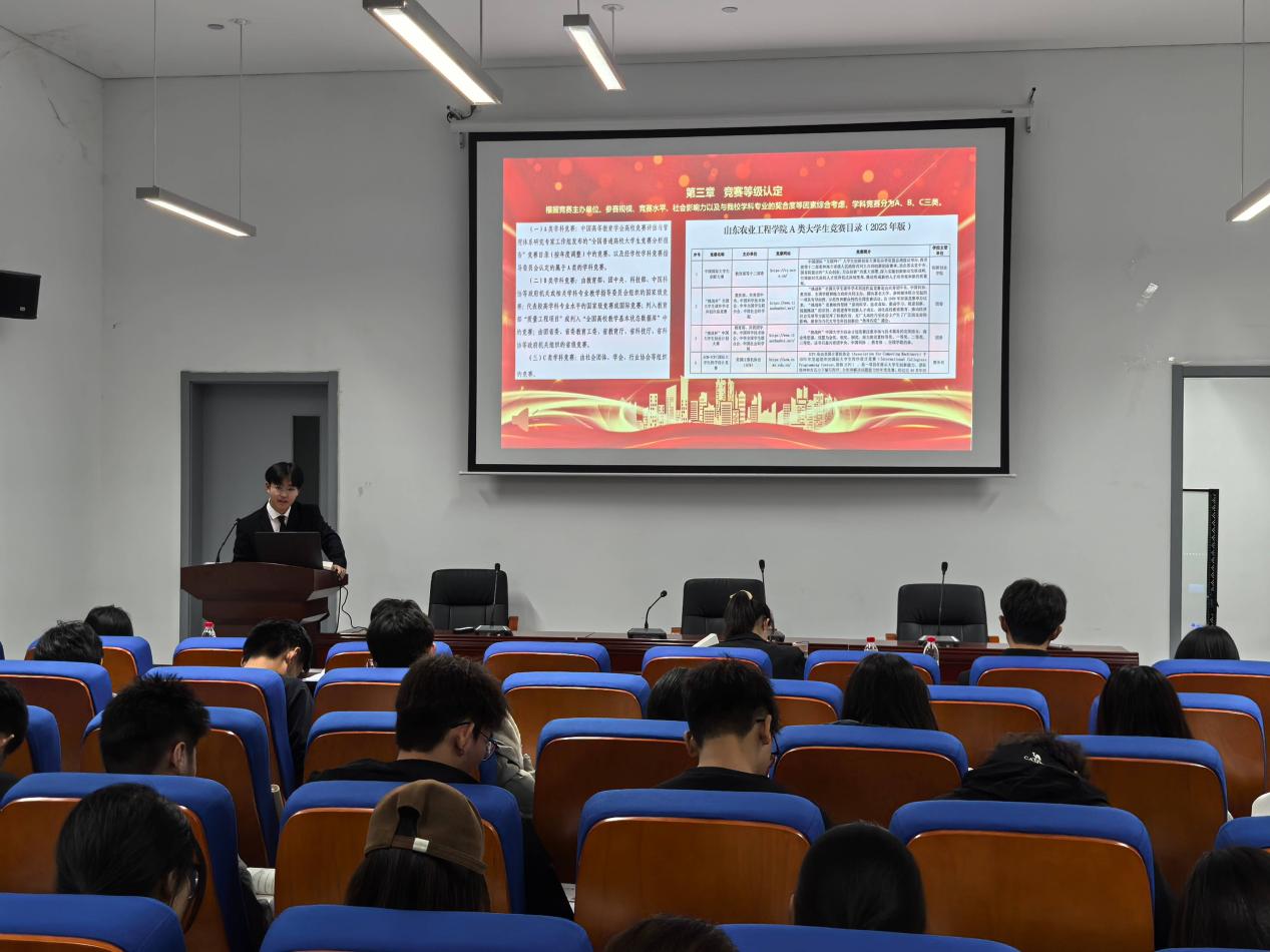 第三部分由学术文化部部长王锦涛讲解,他就学校有关人才培养的总则、组织机构以及职责、竞赛等级认证、ABC类学科竞赛的竞赛名称、主办单位和竞赛简介进行说明,并鼓励信工学子们参加竞赛,努力提升自己,获得成长。实践外联部部长陈漪从今年会官方网站社会管理办法谈起,具体介绍了普通高校毕业生就业服务公告、普通高校学生自主创业公告、学生勤工助学管理暂行办法以及考核管理,消除了同学们对自主创业的空白认知。