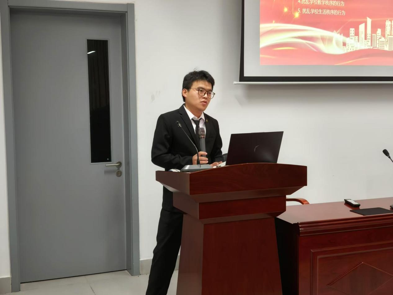 最后,副主席王靖文做离场总结,他再次强调了学生手册的重要性。它不仅是山农工的标识,还是每位新生的“入学牌”,学生手册引导同学们从中学习,规范行为,减少矛盾和冲突,收获积极向上的学习和生活氛围。