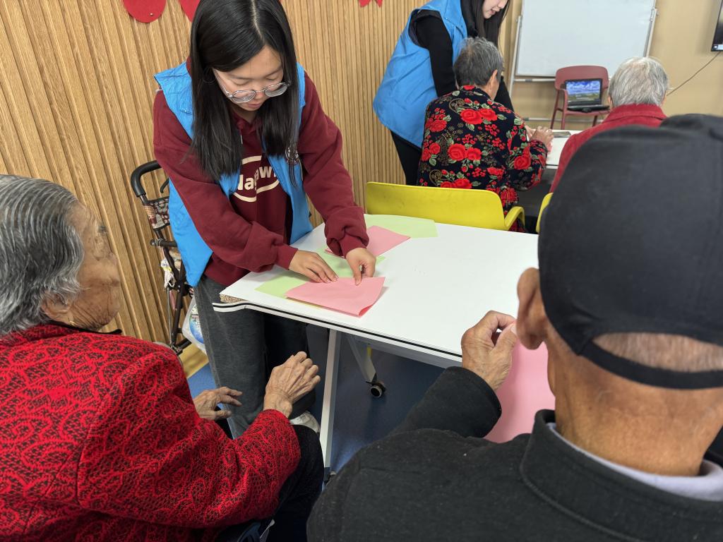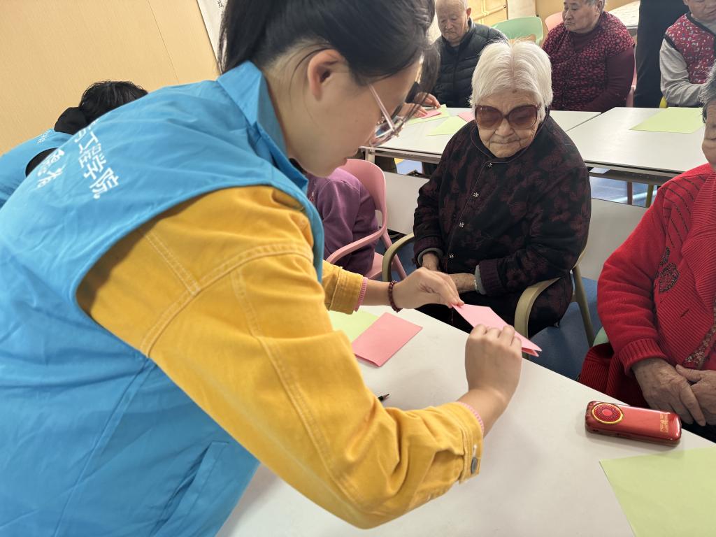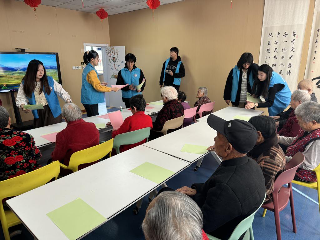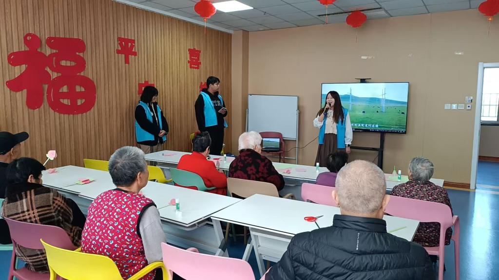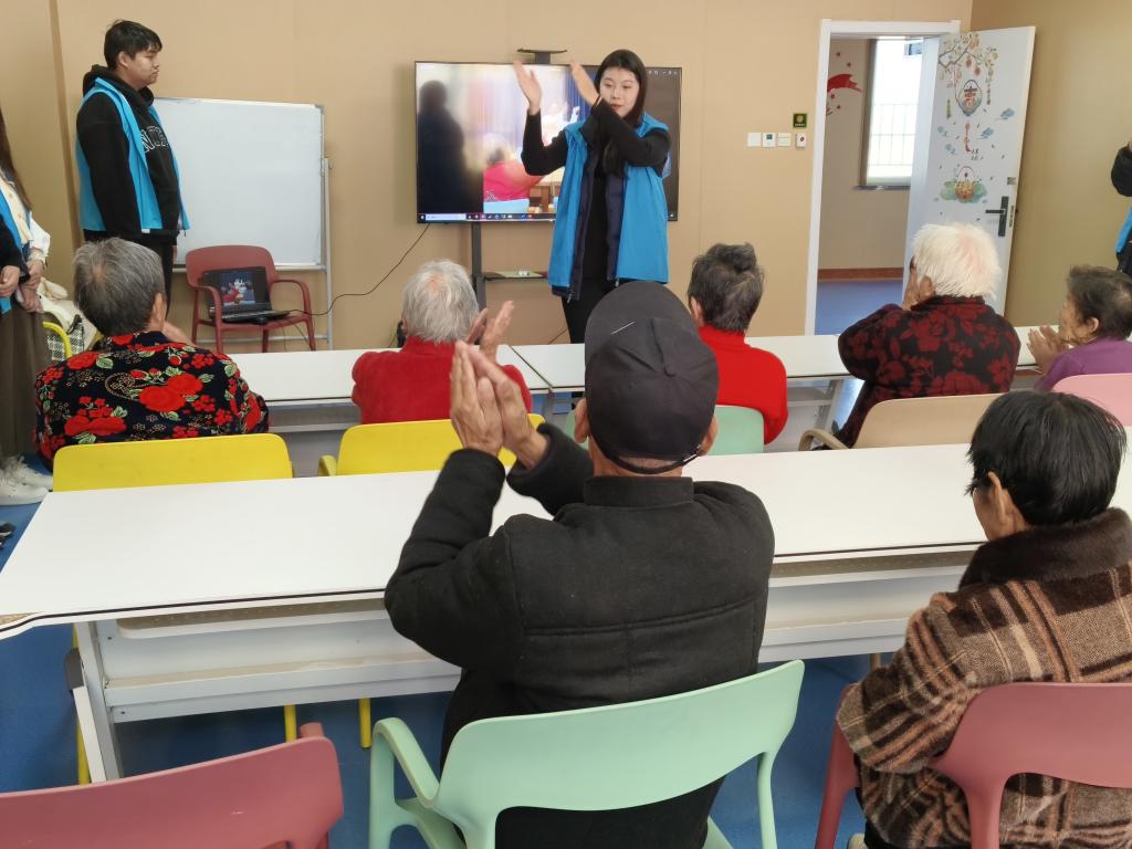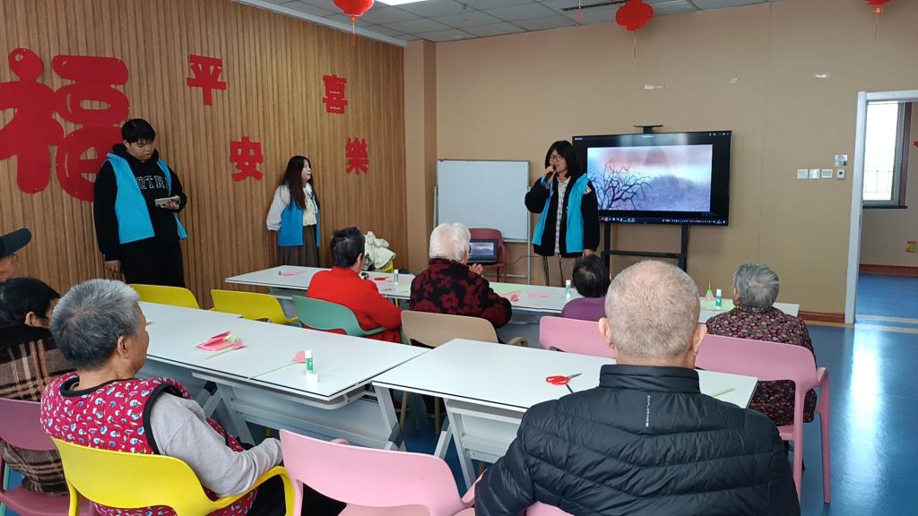 在接下来的活动时间,志愿者们与老人们携手共同开展一系的有意义的活动。在第一项“岁月如歌,舞动人生”手势舞活动中,志愿者们依循预先备好的教程,借助分解教学、示范模仿及集体练习等形式,悉心且逐步地展开教授。随后,进入“艺术疗愈”手工艺作坊环节,老人们与志愿者们进行折纸创作,老人们的创造潜能与兴趣爱好得以充分激发。最后“音乐时光”合唱与才艺表演,有效拉近彼此间的距离,增进了志愿者们彼此间的情谊与信任,也促进了与老年人之间的情感交流。