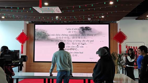 紧接着,国际学生带来的诗词朗诵将活动推向高潮。他们用富有韵味的声音朗诵着经典冬至诗词,虽然发音或许不够标准,但情感真挚饱满。朗诵结束,热烈的掌声经久不息,每位朗诵者都收获了代表认可与鼓励的奖品。