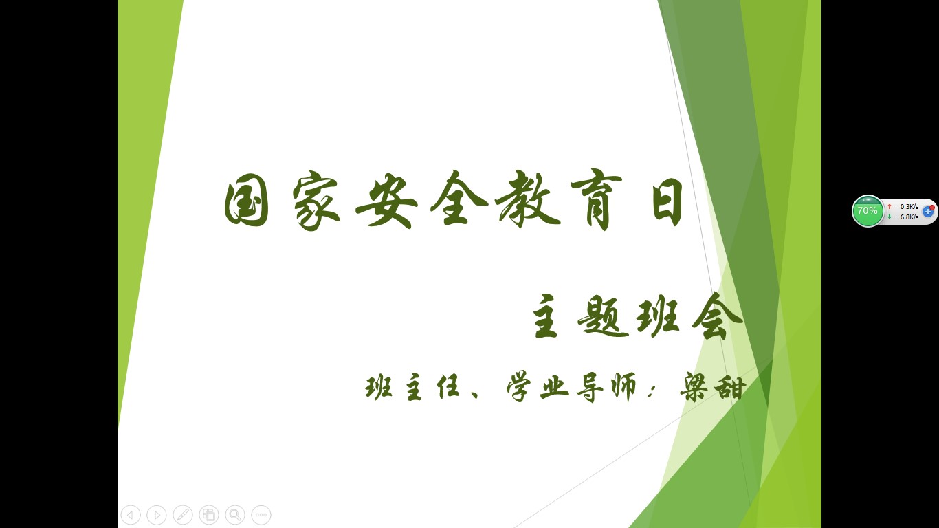 主题班会持续了2个多小时。期间,同学们认真听讲的同时积极参与互动,踊跃发言。同学们纷纷表示,此次主题班会形式新颖,内容充实,通过学习不但深刻领会了总体国家安全观的意义,而且提高了自觉抵制危害国家安全的言论、行为,文明上网,争当保护国家安全的小卫士,为铸造国家安全的铜墙铁壁贡献力量的决心。