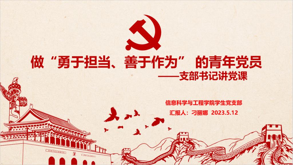 2023年5月12日下午,院学生支部书记刁丽娜以“做勇于担当、善于作为的新时代党员”为题,为学生支部党员讲授了一堂生动的主题党课。