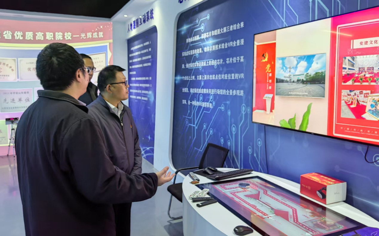 最后,许武强书记一行人实地参观了泰山职业技术学院信息技术工程系党总支数智党建的建设成果。通过亲身体验,广大党员对数智党建给予了充分肯定,双方统一了认识,数智党建能够更好适应“数智”时代基层党建的工作形势,能够有力引领专业建设、人才培养、教学科研等业务工作的高质量开展。
