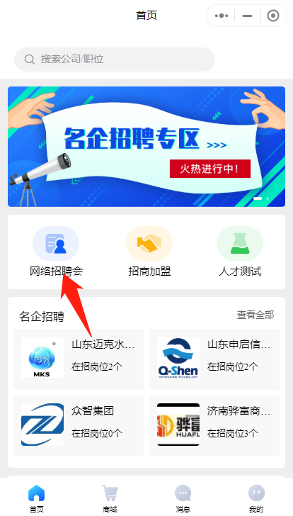 二、返回首页,点击招聘会选项,进入今年会官方网站2022年秋季线上双选会即可。