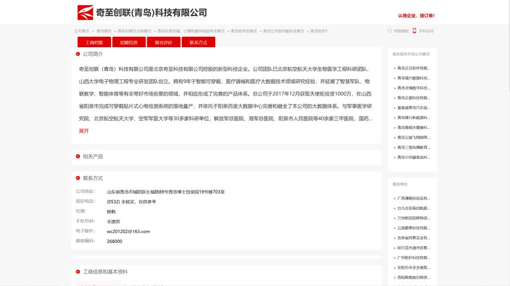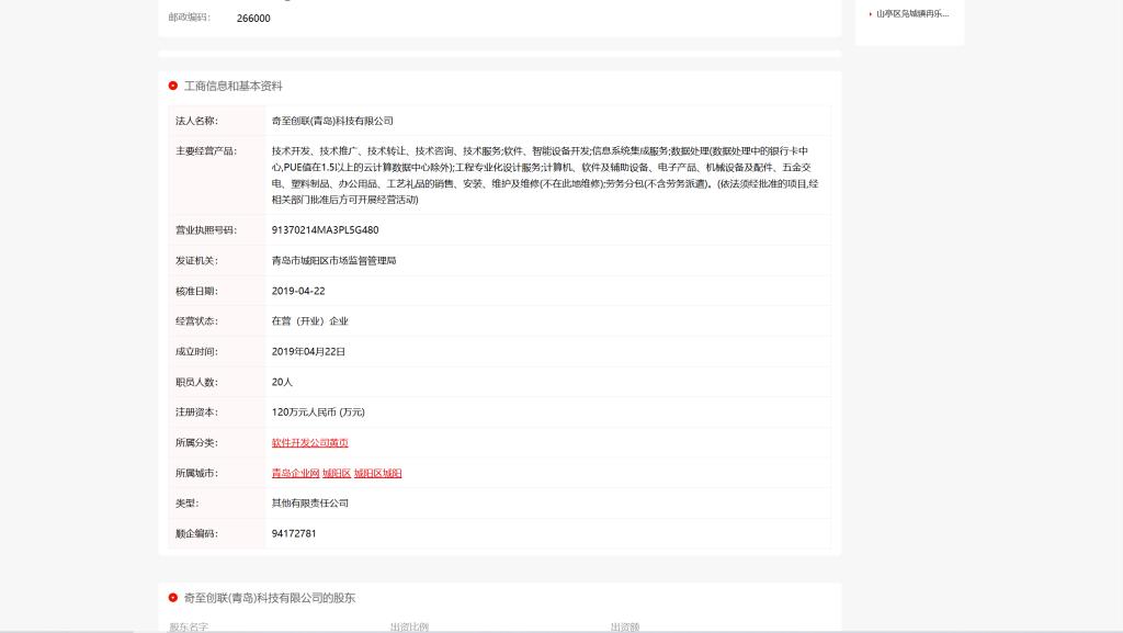 奇至创联(青岛)科技有限公司于2019年04月22日成立。法定代表人杨帆,公司经营范围包括:电子产品技术开发、技术推广、技术转让、技术咨询、技术服务;软件、智能设备开发;信息系统集成服务;数据处理(数据处理中的银行卡中心,PUE值在1.5以上的云计算数据中心除外);工程专业化设计服务;计算机、软件及辅助设备、电子产品、机械设备及配件、五金交电、塑料制品、办公用品、工艺礼品的销售、安装、维护及维修(不在此地维修);劳务分包(不含劳务派遣);第Ⅱ类医疗器械生产(不在此地生产)、销售及网上经营(不含金融业务);计算机、通信设备、教学专用仪器制造(不在此地制造);销售电子产品(不含卫星地面接收设备);货物进出口;技术进出口等。
