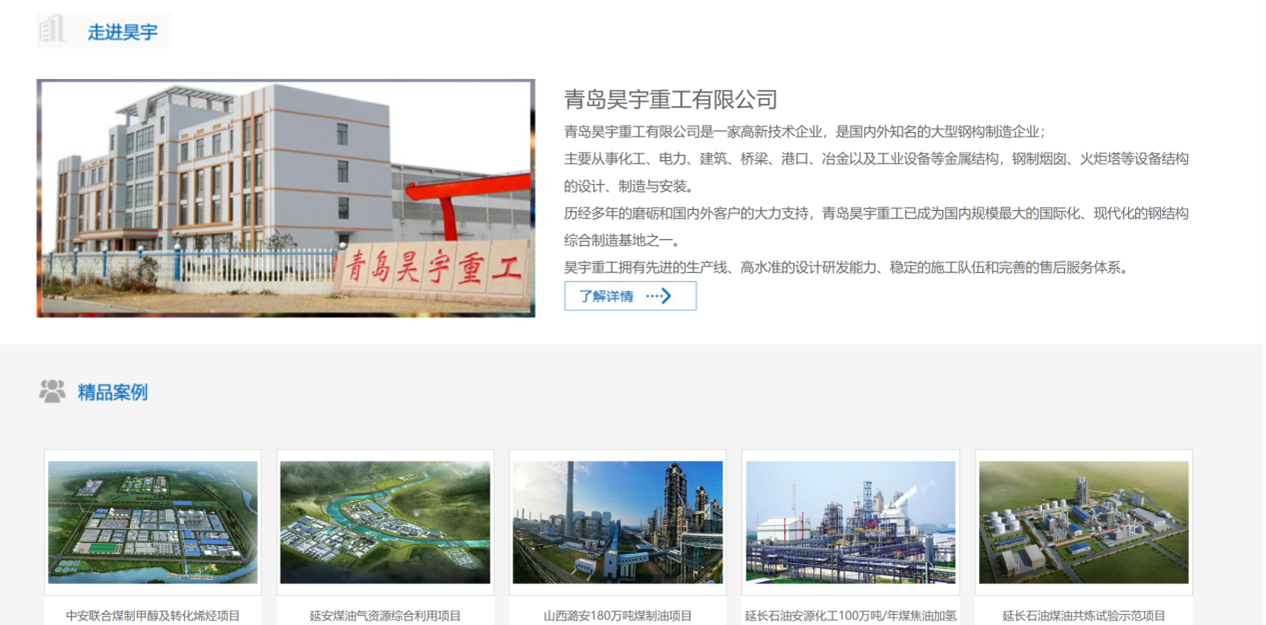 青岛昊宇重工有限公司(以下简称昊宇重工)是一家高新技术企业,地处山东省胶州市国际工业园,是国内外知名的大型钢构制造企业;同时,公司下设江西瑞金生产基地。公司主要从事化工、电力、桥梁、港口以及工业设备等金属结构,钢制烟囱、火炬塔等设备结构的设计、制造与安装。拥有数条轻钢、重钢生产线以及卷管生产线,钢结构年产能达60万吨,烟囱年产能达1200根。历经多年的磨砺和国内外客户的大力支持,青岛昊宇重工已成为国内规模最大的国际化、现代化的钢结构及烟囱综合制造基地之一。